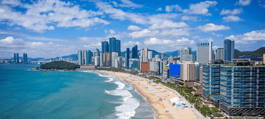 - Haeundae & Gwangalli Beaches: Haeundae is a globally recognized resort beach. Nearby, you’ll find Busan X the Sky, a 100-story observatory, offering spectacular views of both the city and the ocean. Gwangalli is known for the dazzling night view of the Gwangandaegyo Bridge and its lively atmosphere, perfect for enjoying water activities.